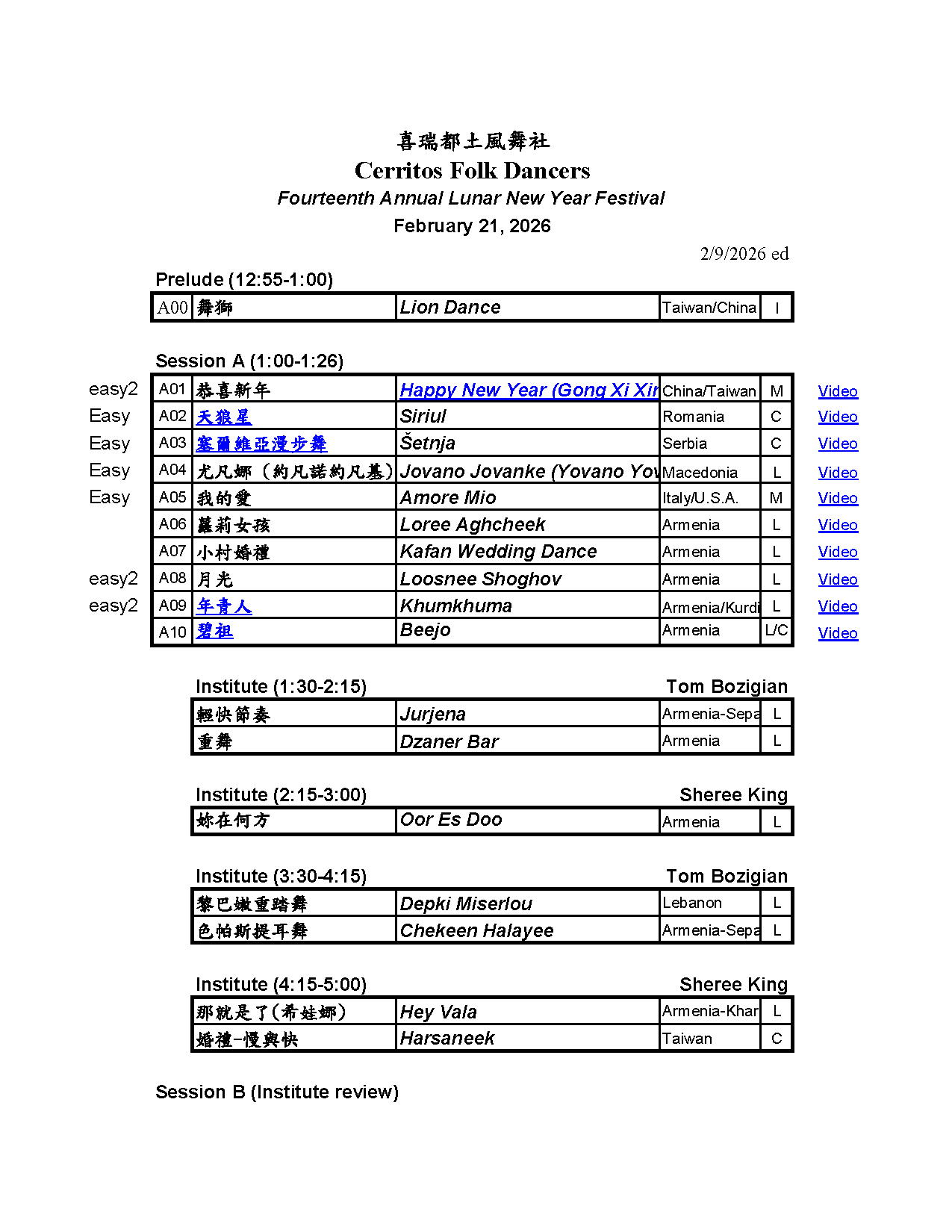 Lunar New Year Festival at Cerritos Folk Dancers