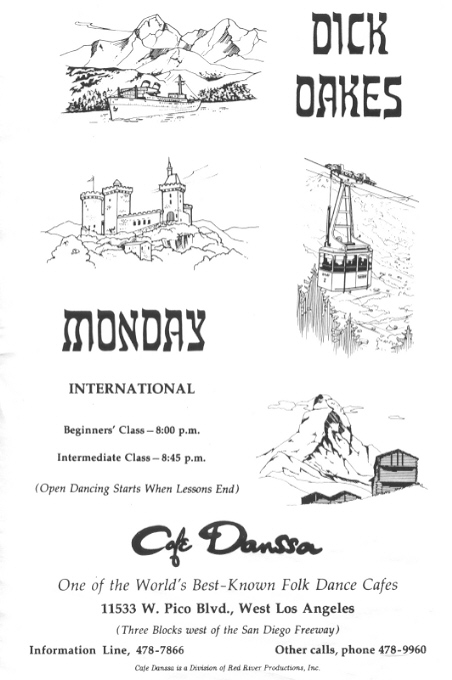 Folk Dance Federation of California, South, Inc. Monday International THIS IS HISTORICAL INFORMATION ONLY CLICK AN IMAGE TO ENLARGE Here's a flyer from Monday at Cafe Danssa.
